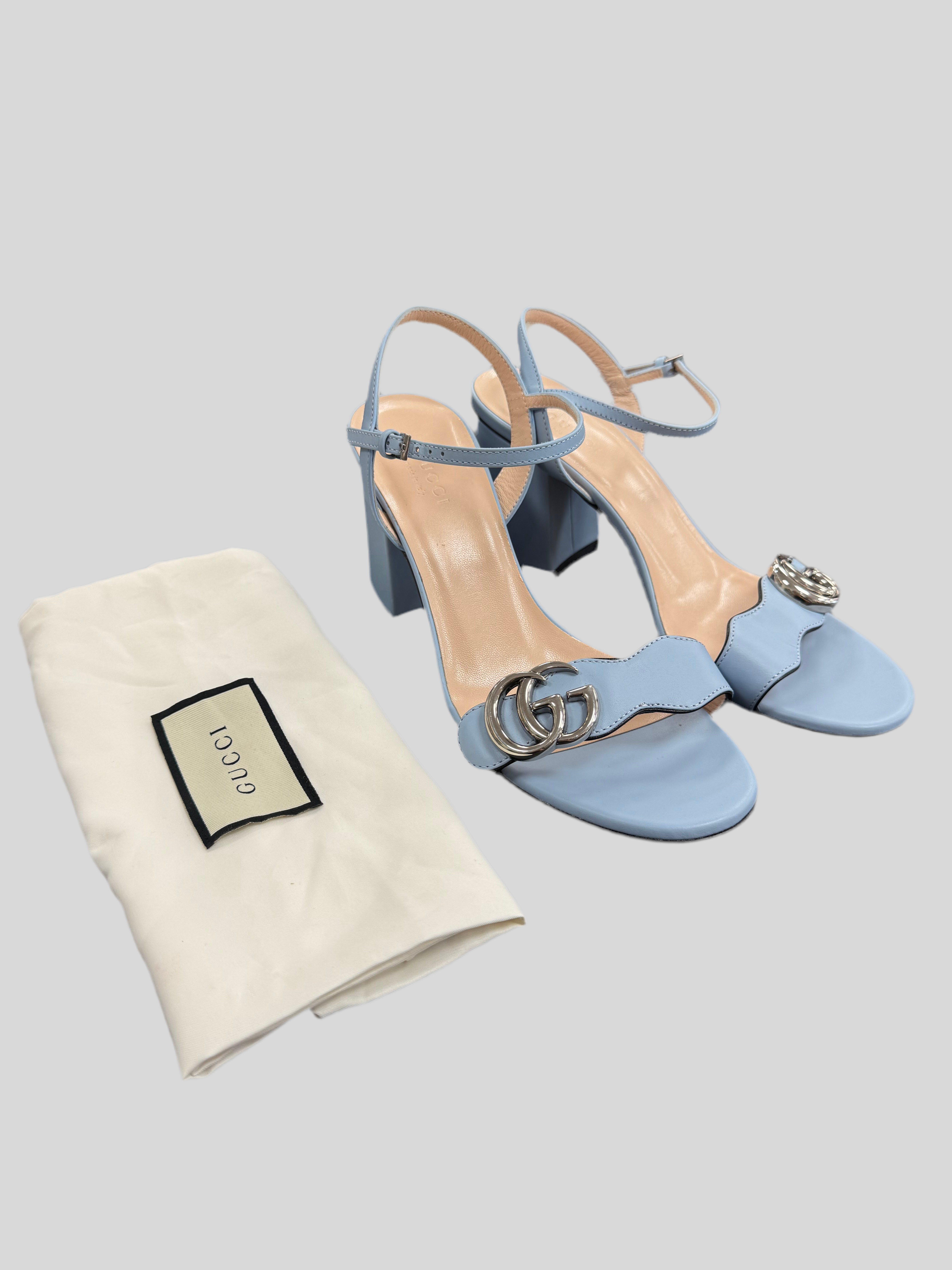 Sandales Marmont Gucci en cuir bleu clair, en excellent état.