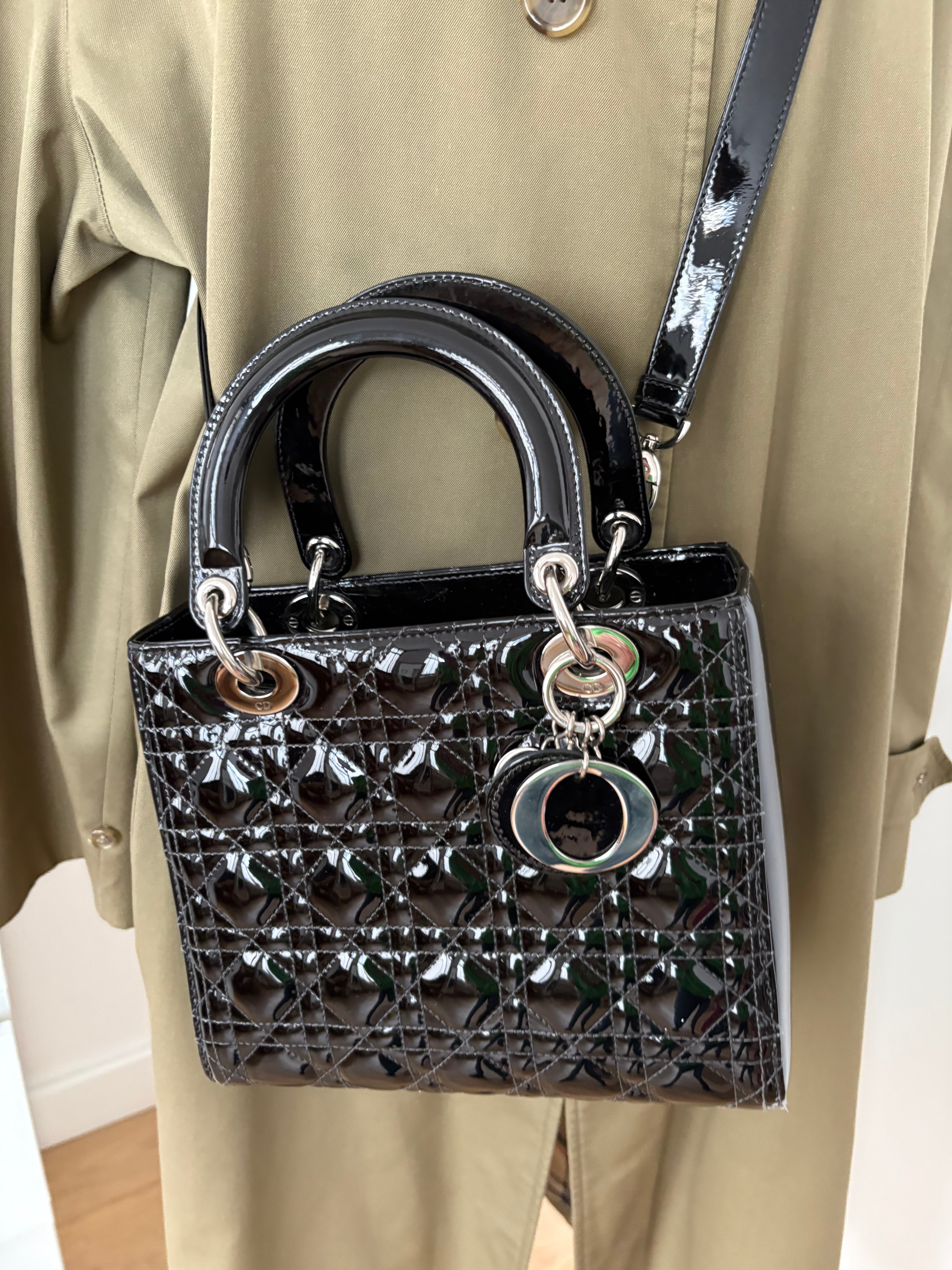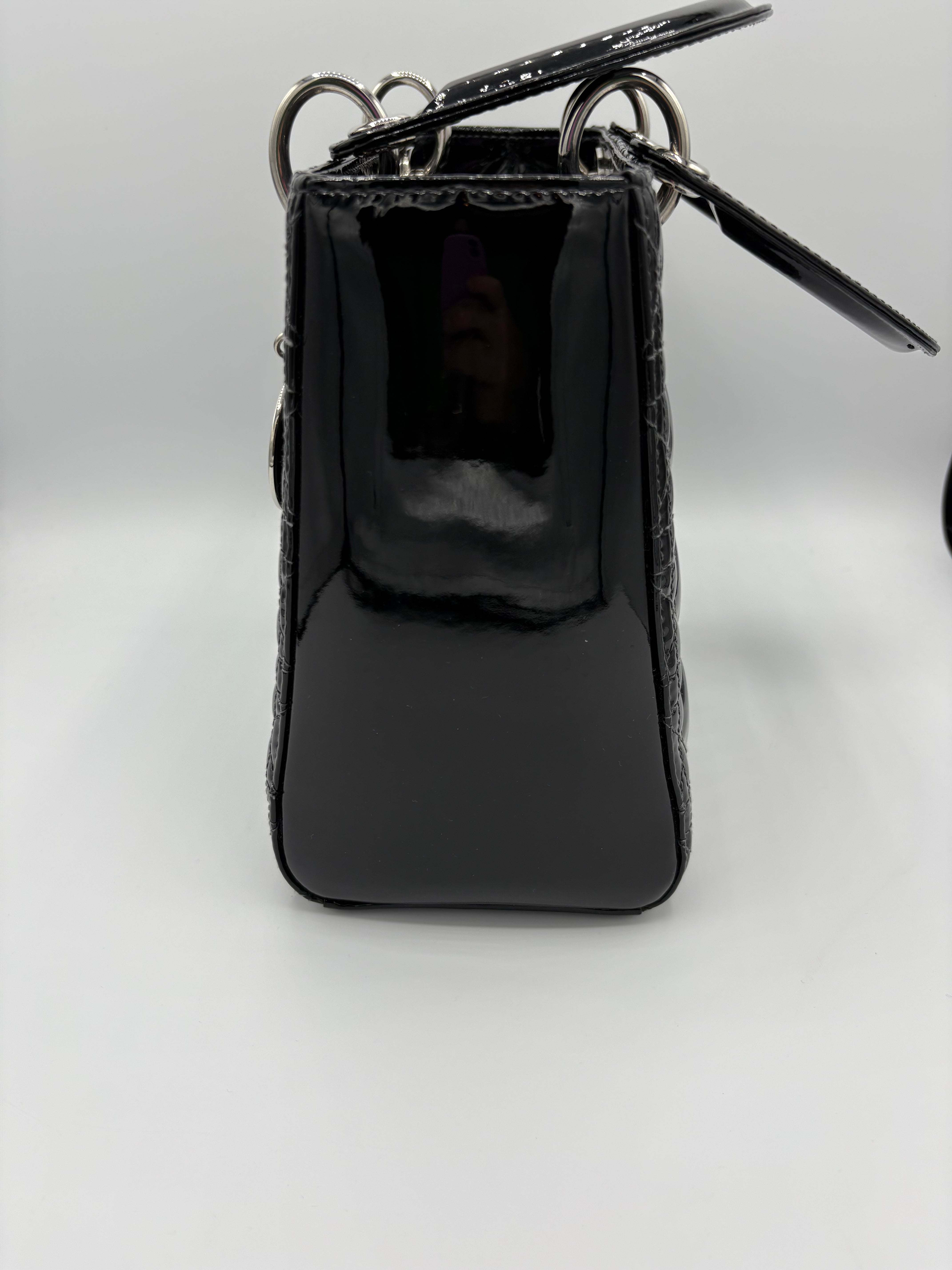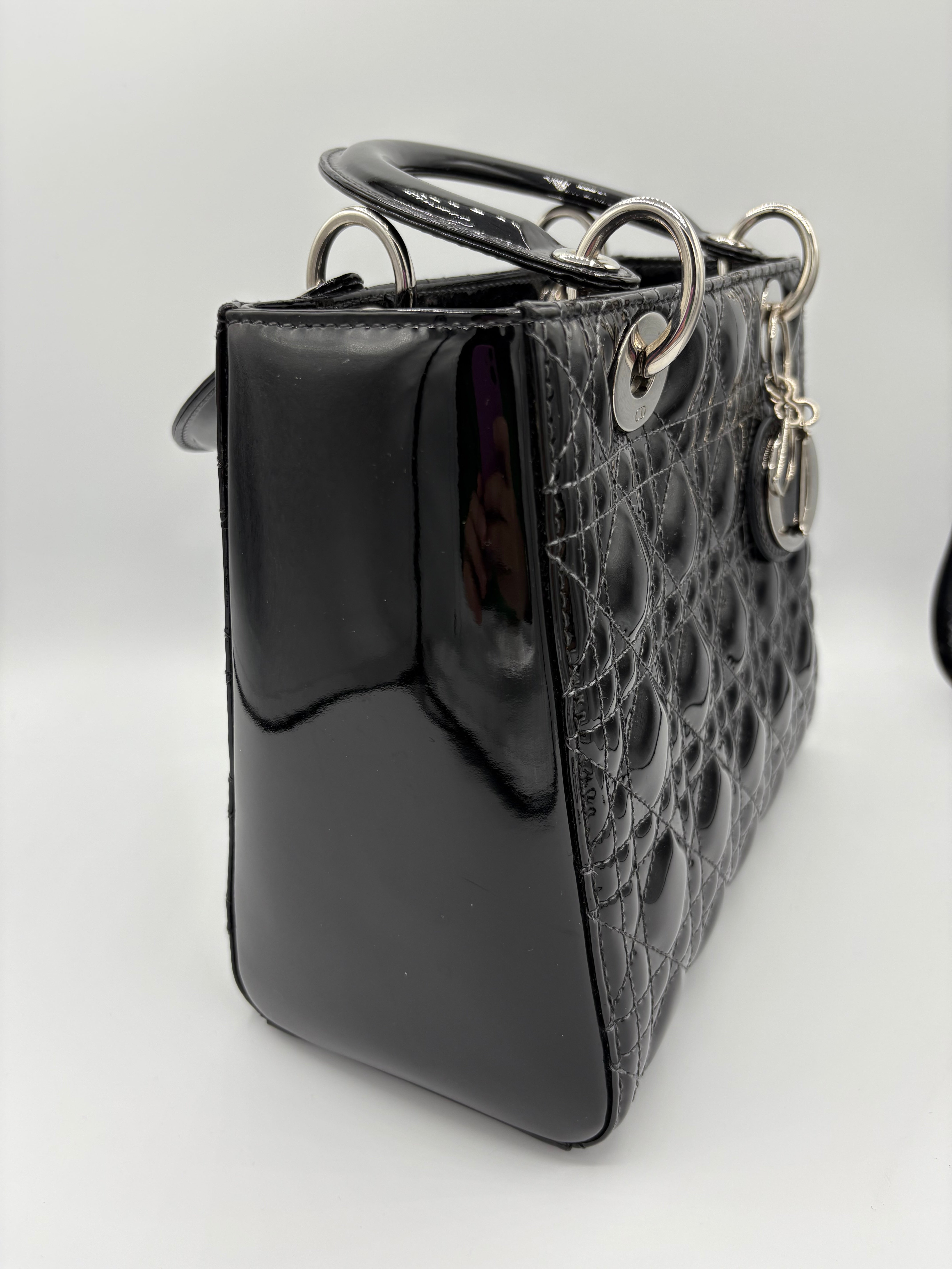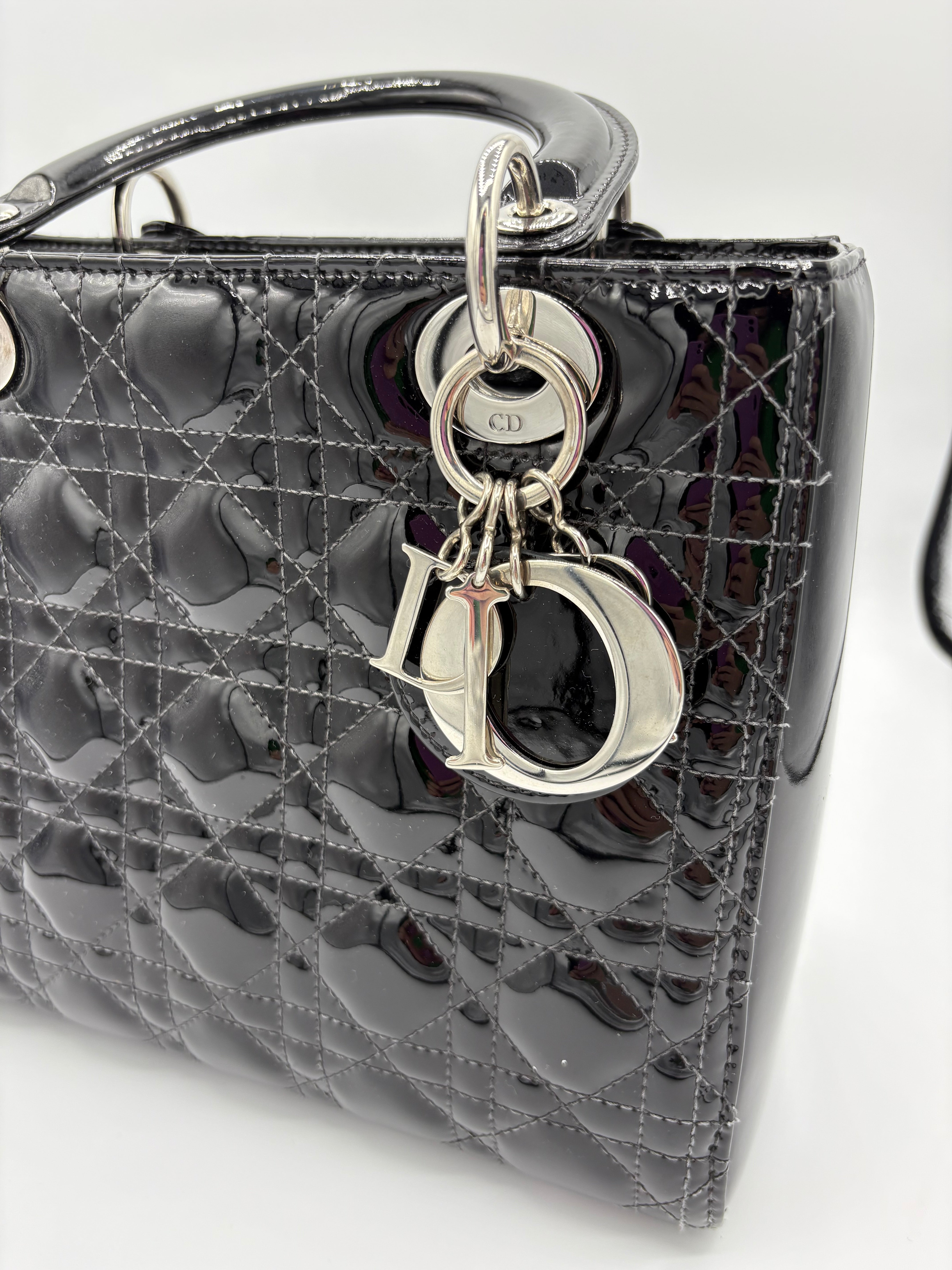 État excellent pour ce Lady Dior Médium en cuir vernis.