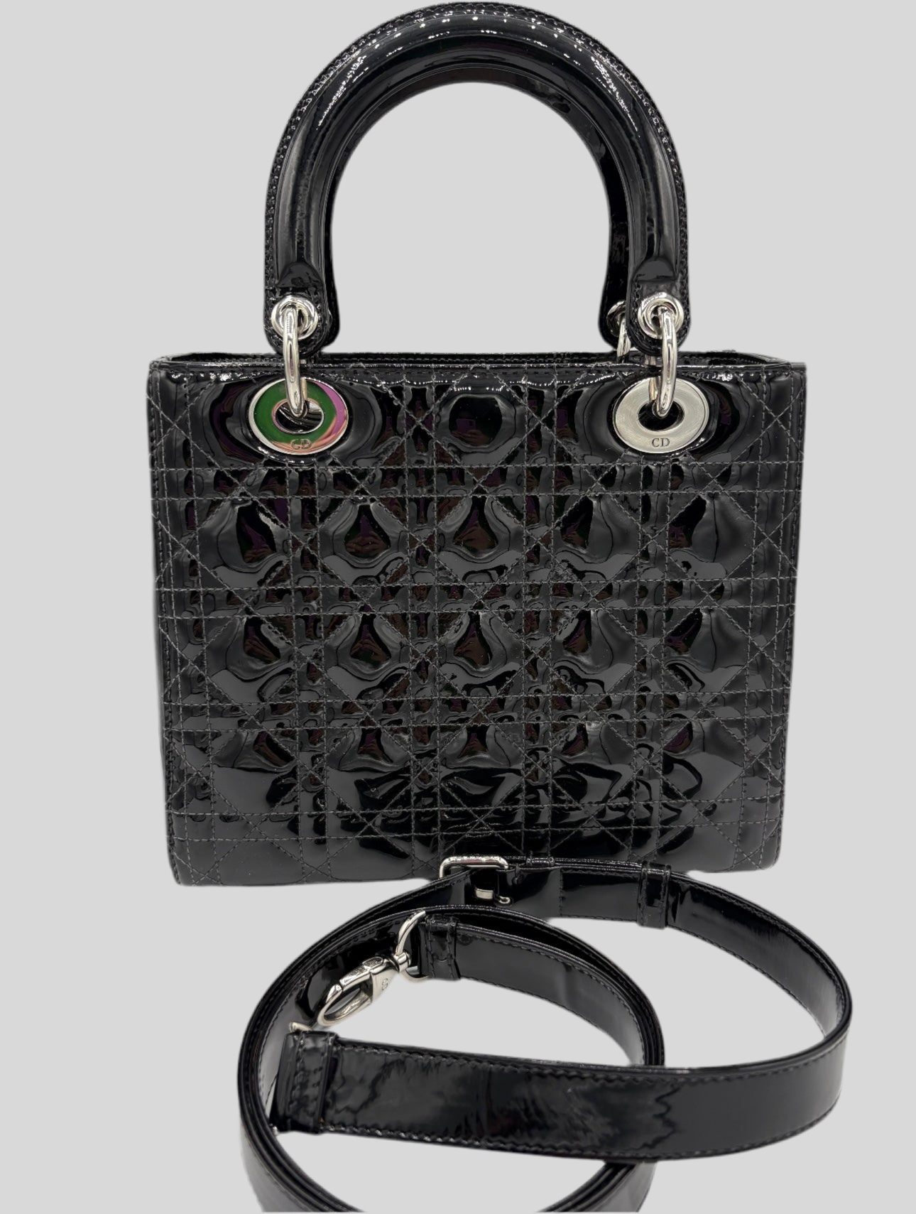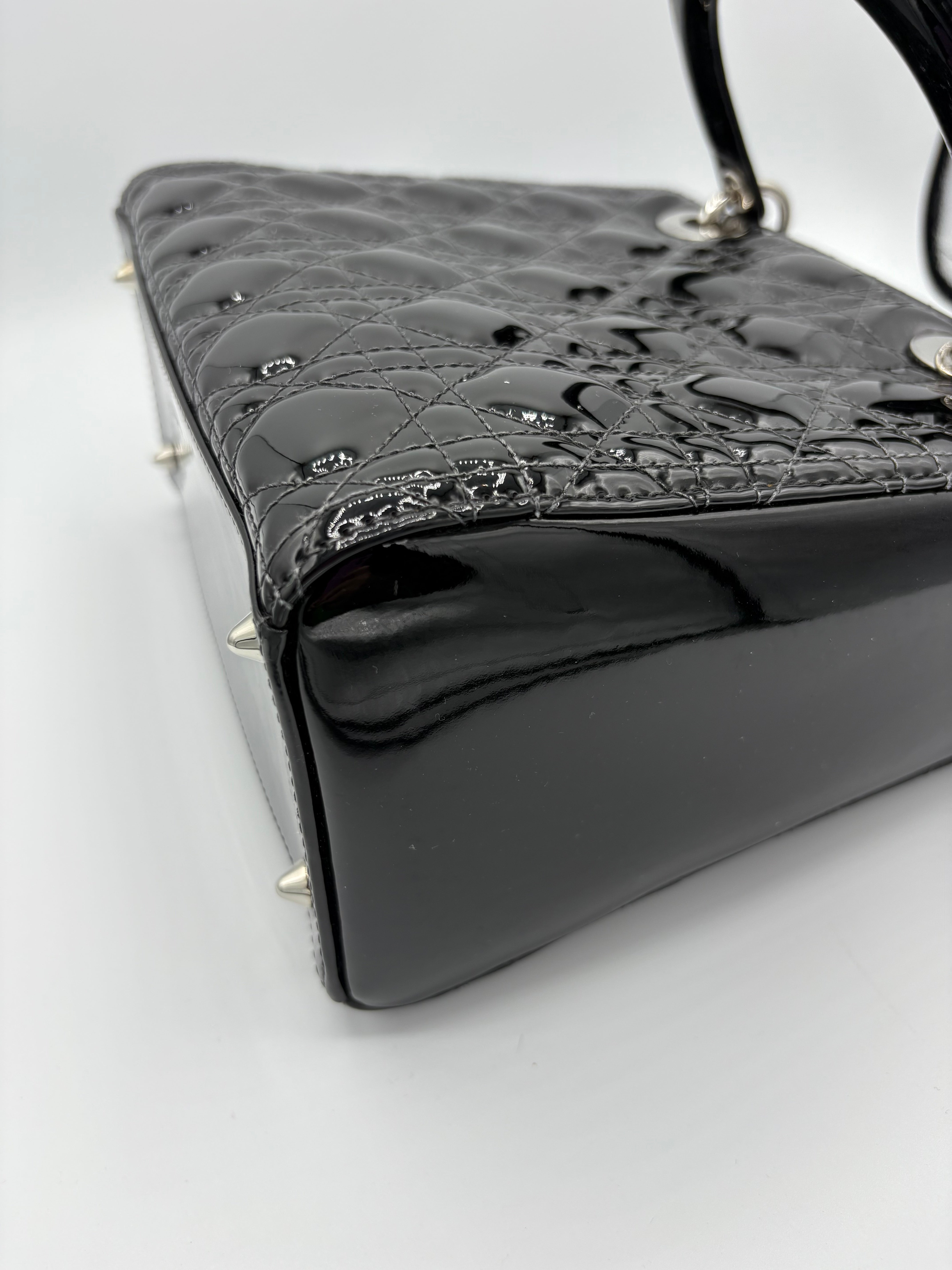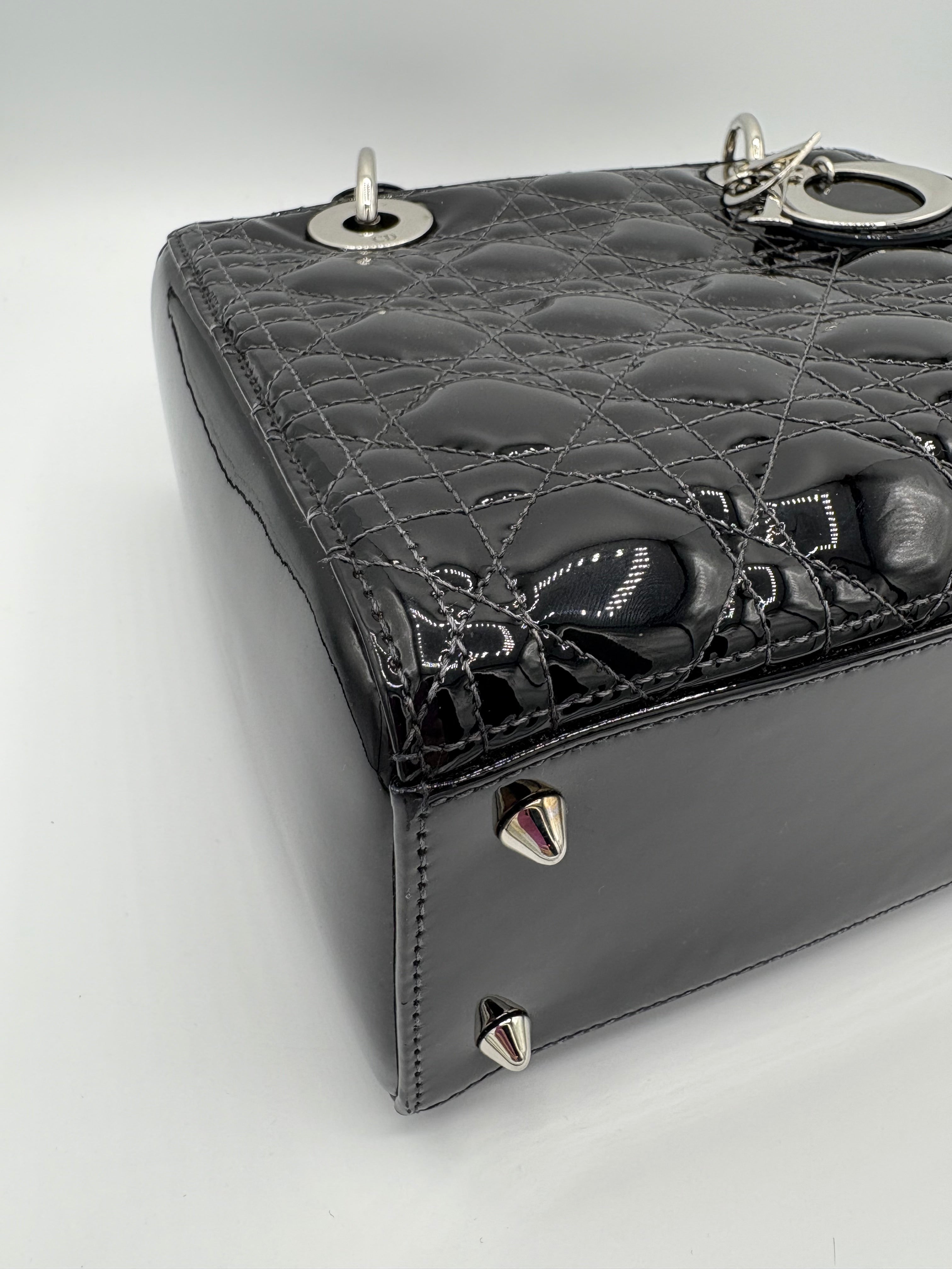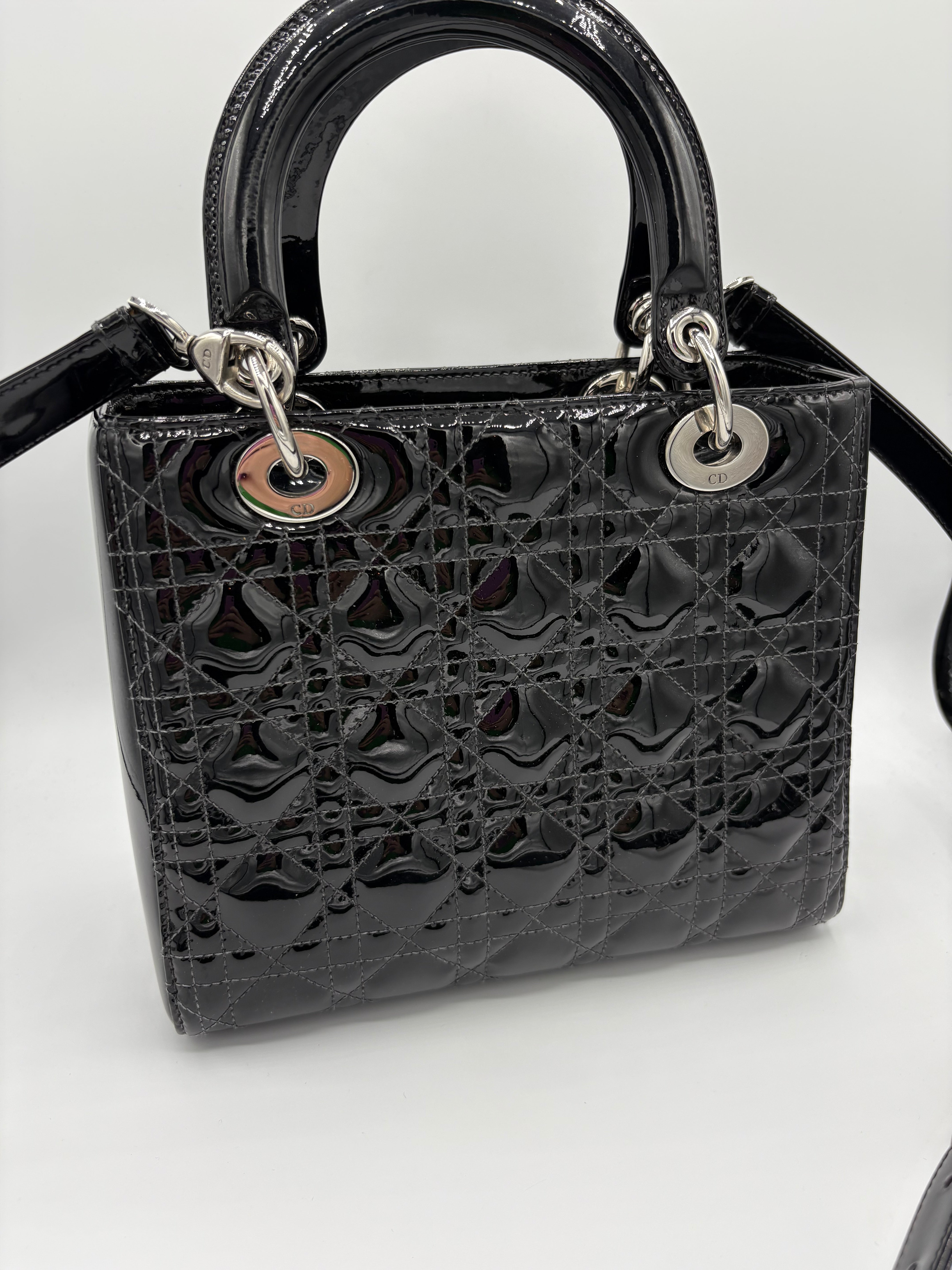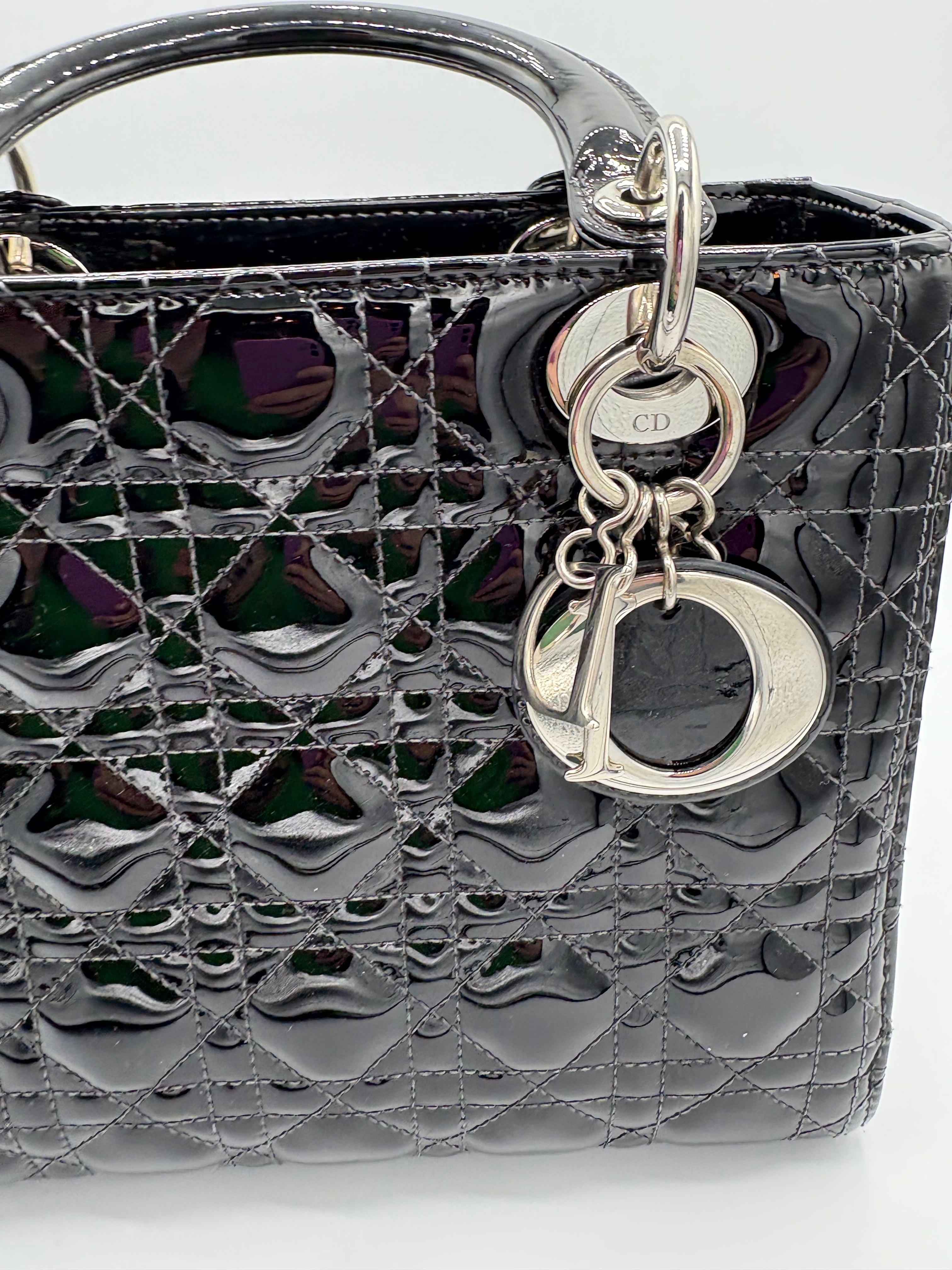 État excellent pour ce Lady Dior Médium en cuir vernis.