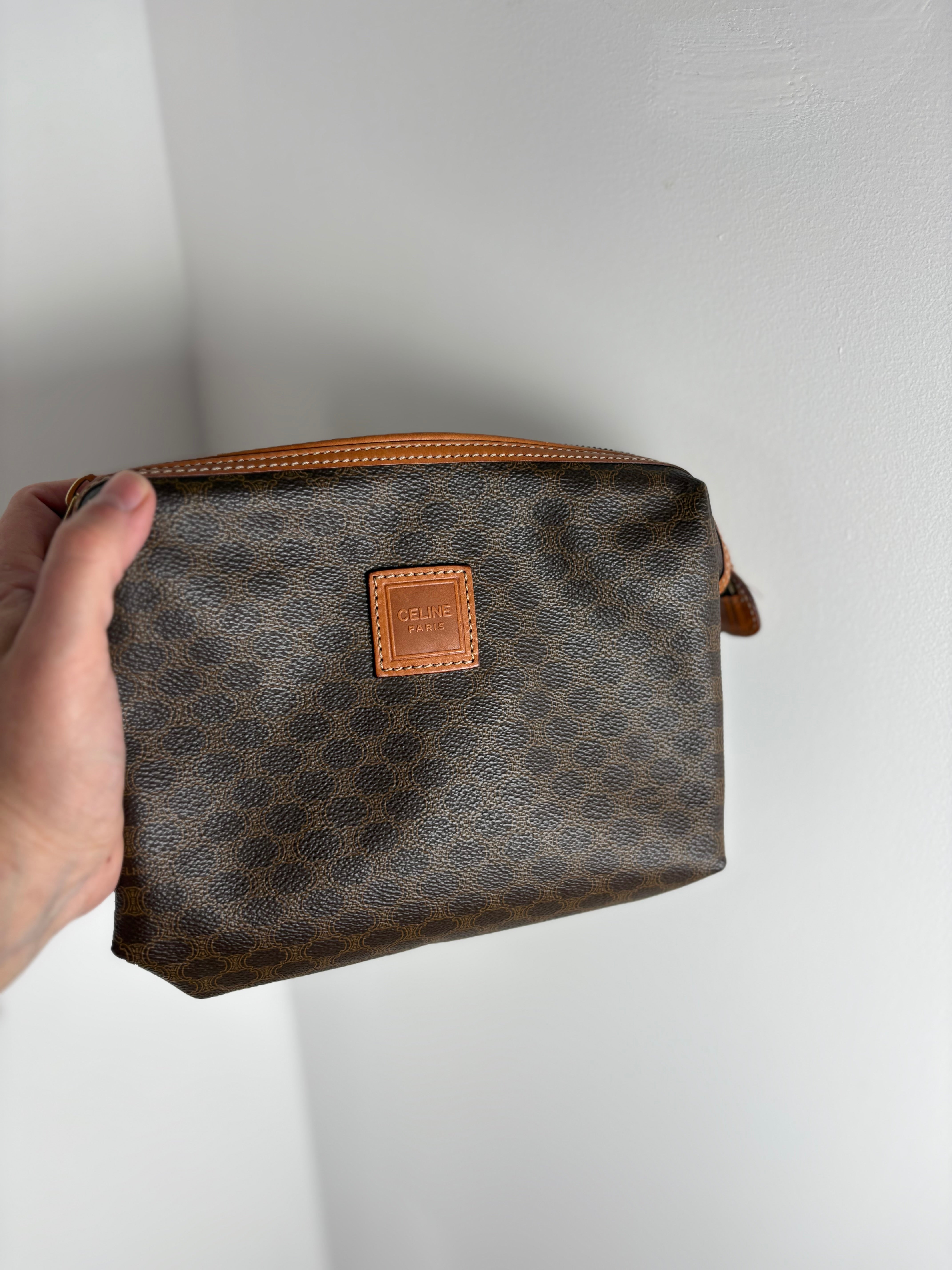 Pochette en très bon état général. Peut être utilisée en trousse de toilette ou pochette selon les usages.