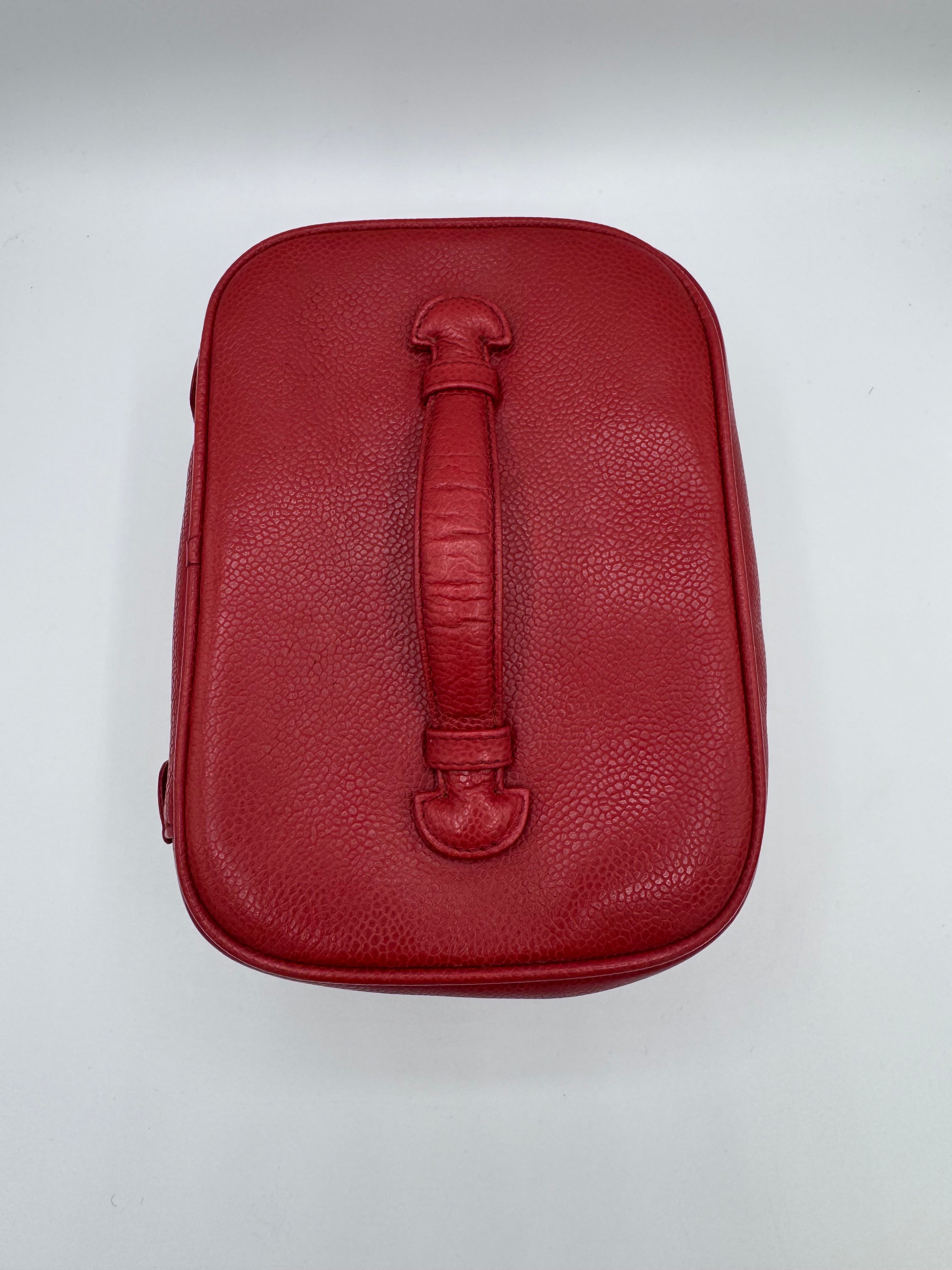 Vanity de chez Chanel en cuir grainé rouge, en très bon état.