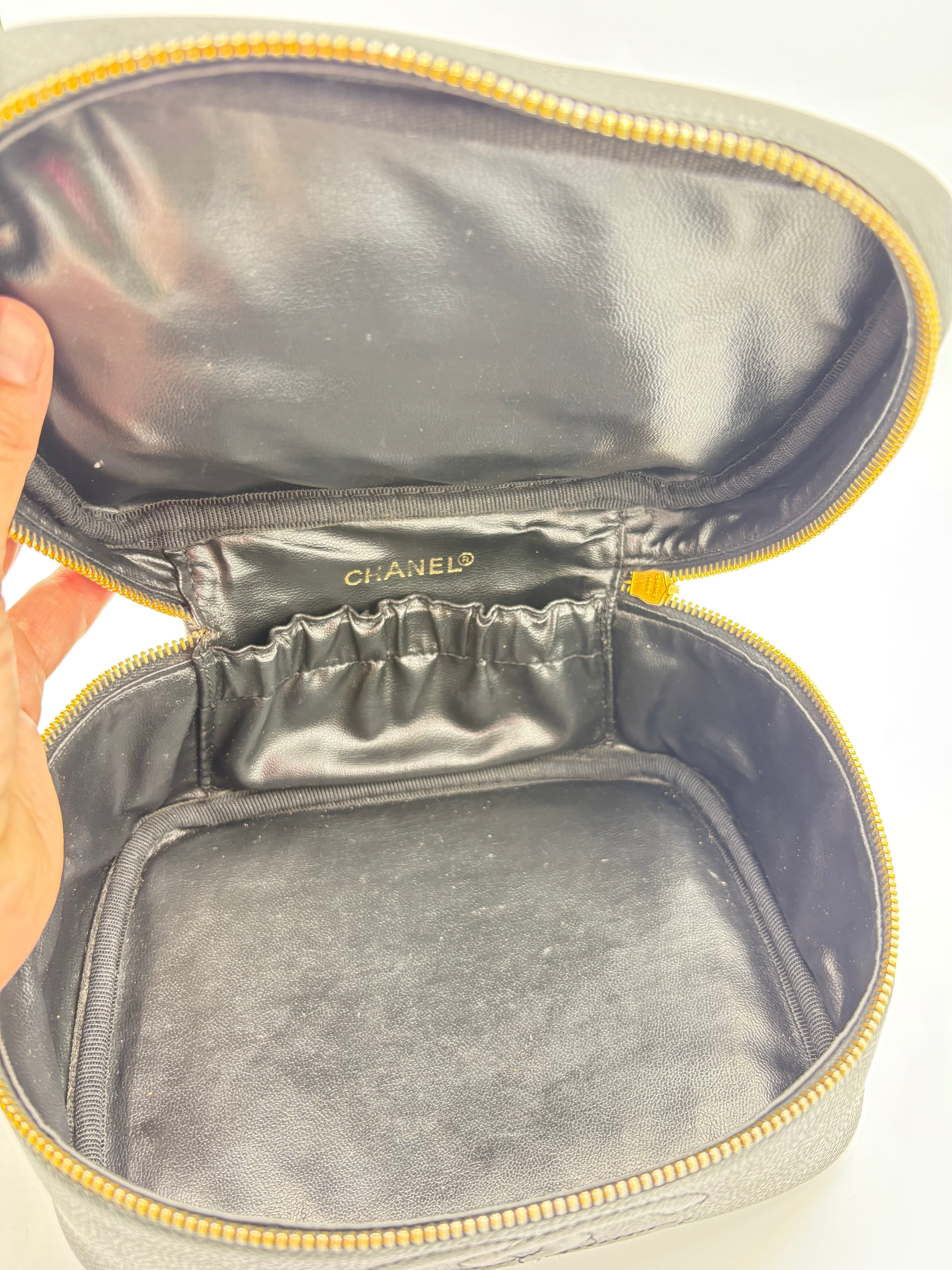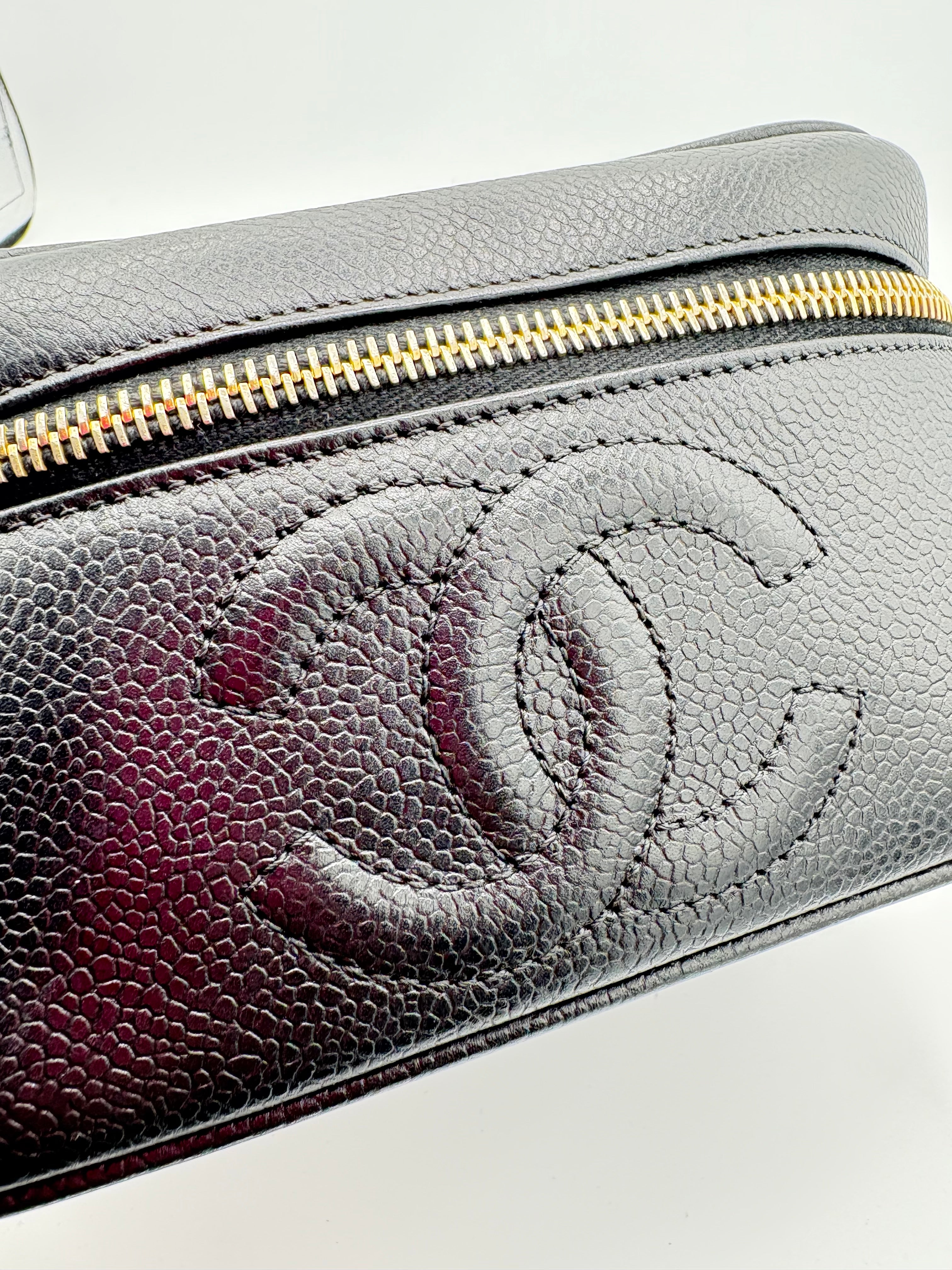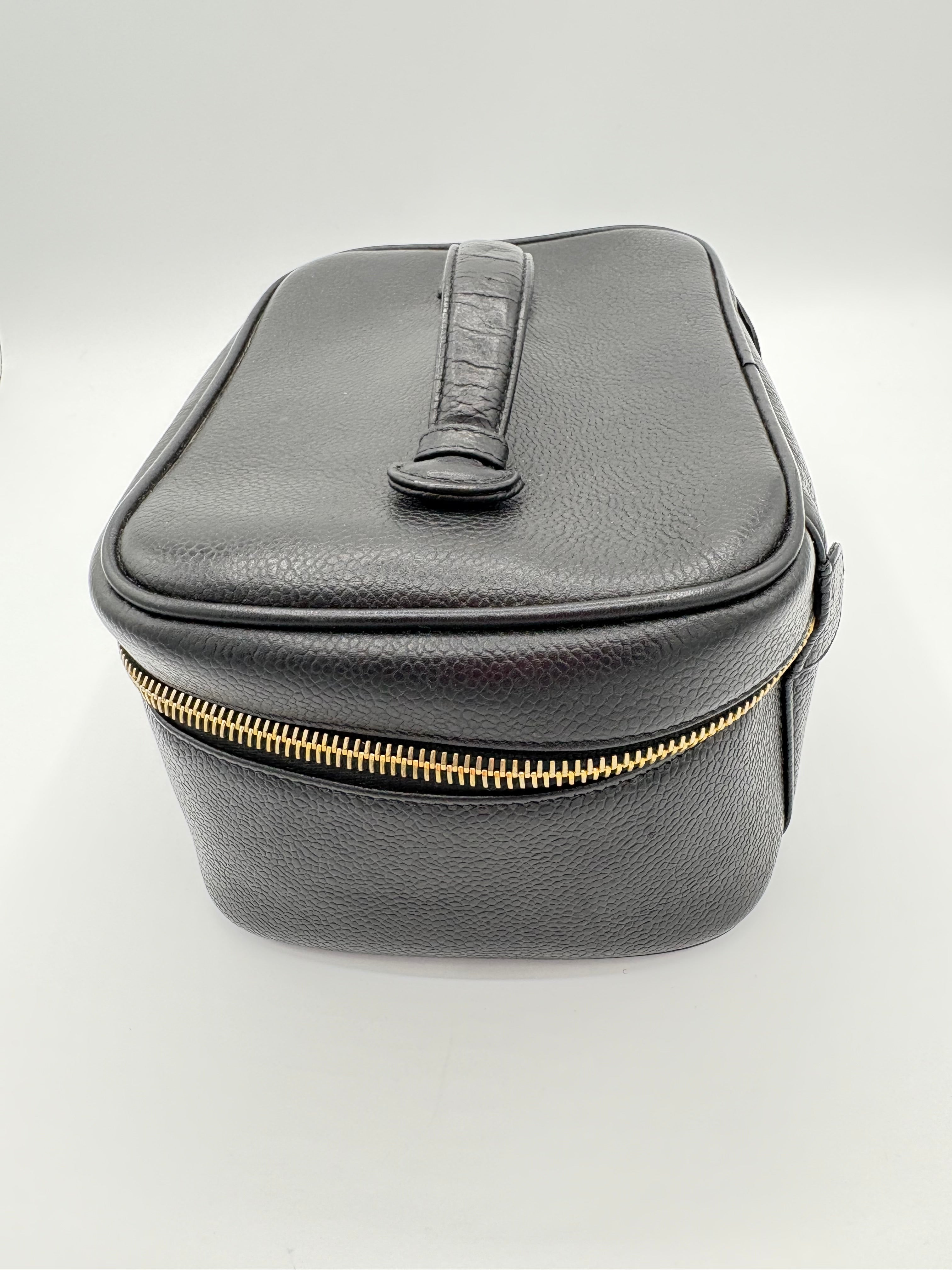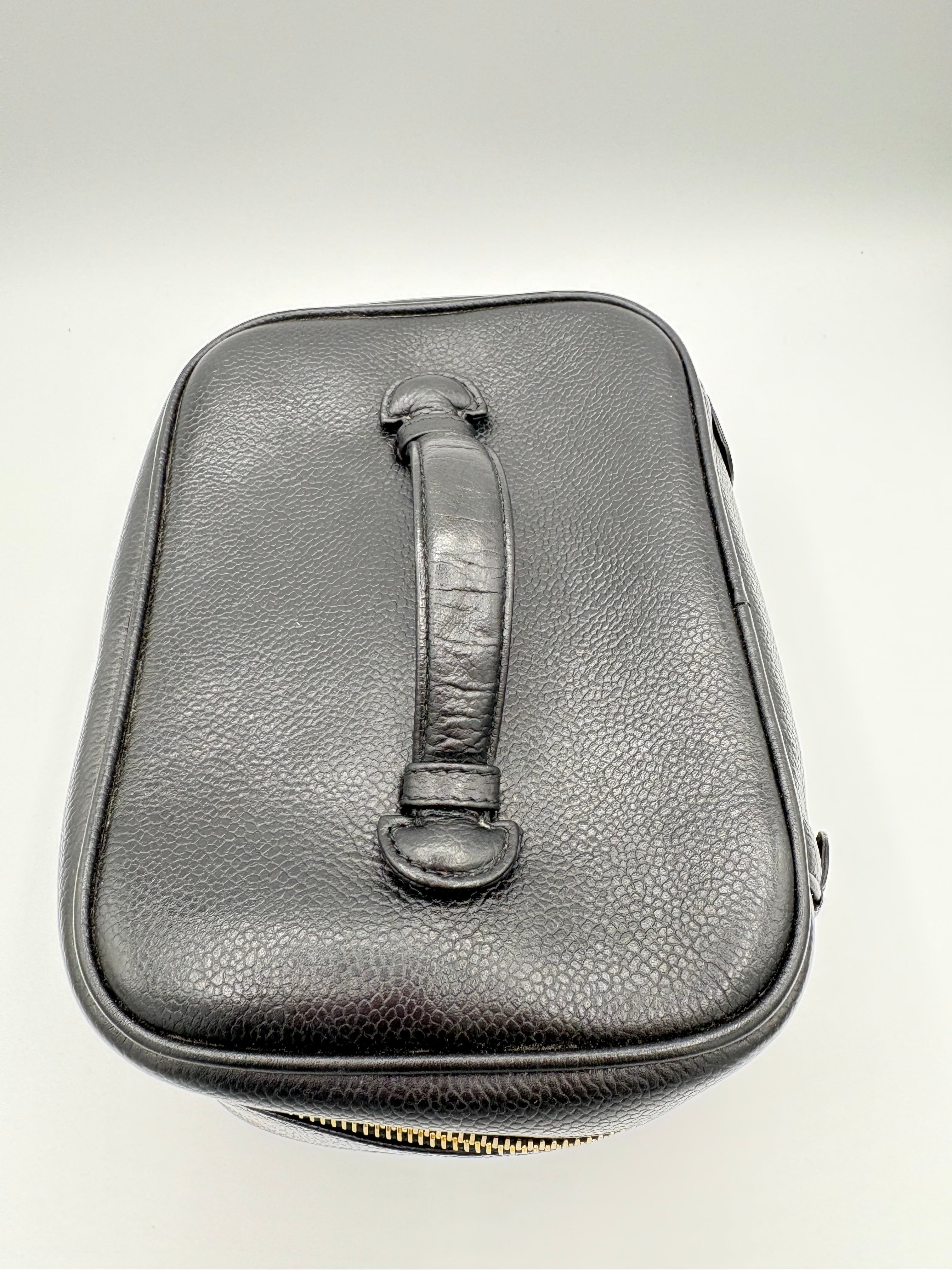 Vanity de chez Chanel en cuir de veau grainé noir, en très bon état.